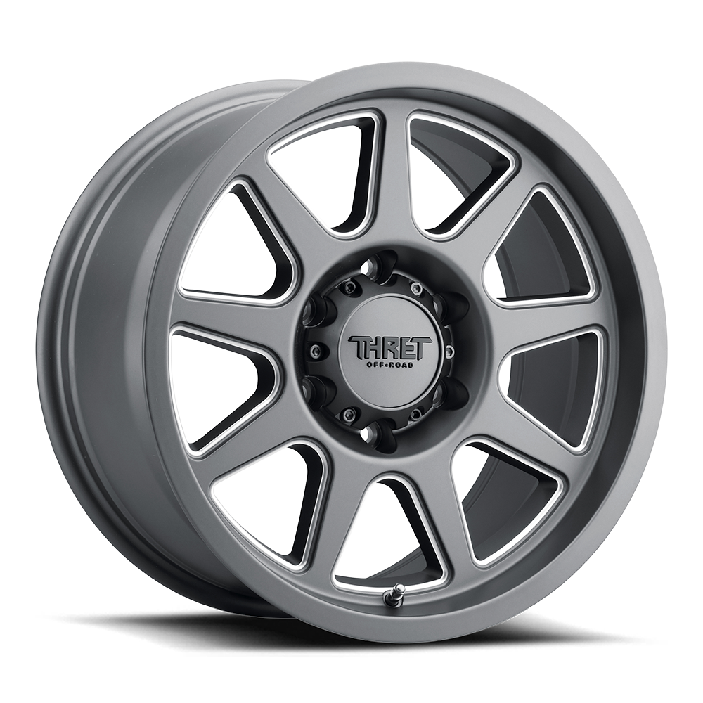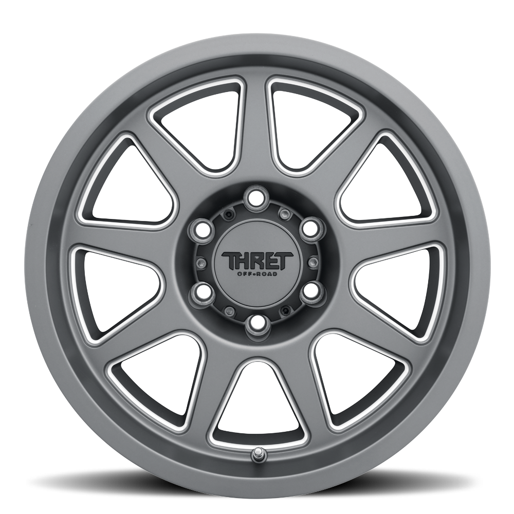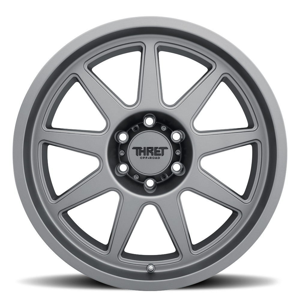 The THRET® 705 is a new take on a classic look, a 9-spoke, exposed-lug design engineered for optimal strength-to-weight performance. Each spoke is structurally profiled to distribute impact forces evenly across the barrel, ensuring consistent load balance and durability in demanding conditions. Built through advanced gravity casting, the 705 combines a high-density alloy structure with precision machining for superior integrity and balance. Its deep lip and reinforced outer flange add rigidity where it matters most, giving the wheel the backbone needed to handle tough terrain and heavy vehicles.